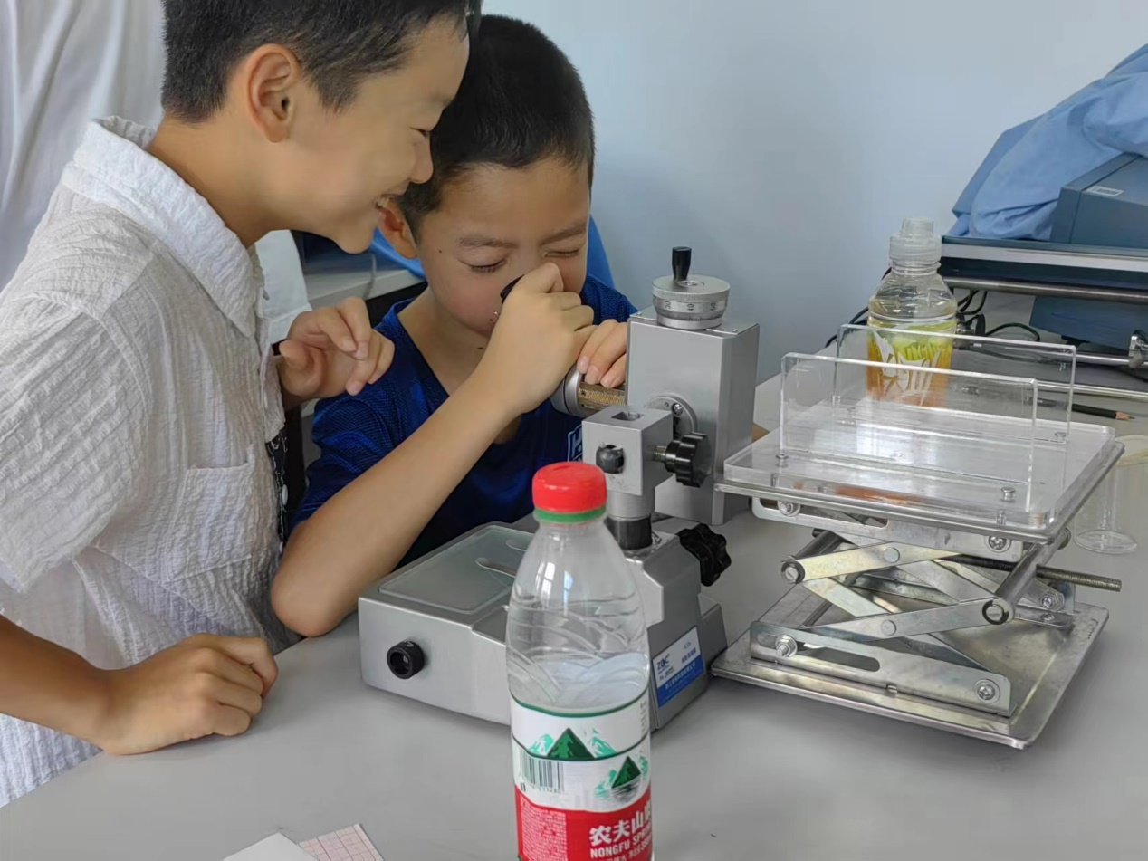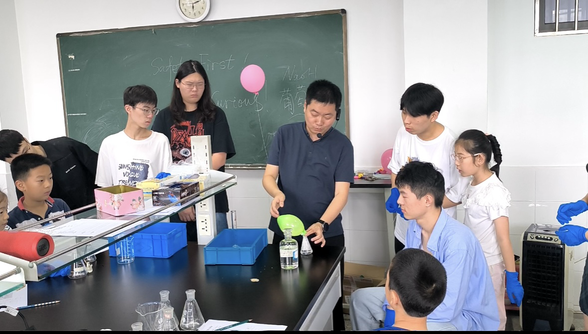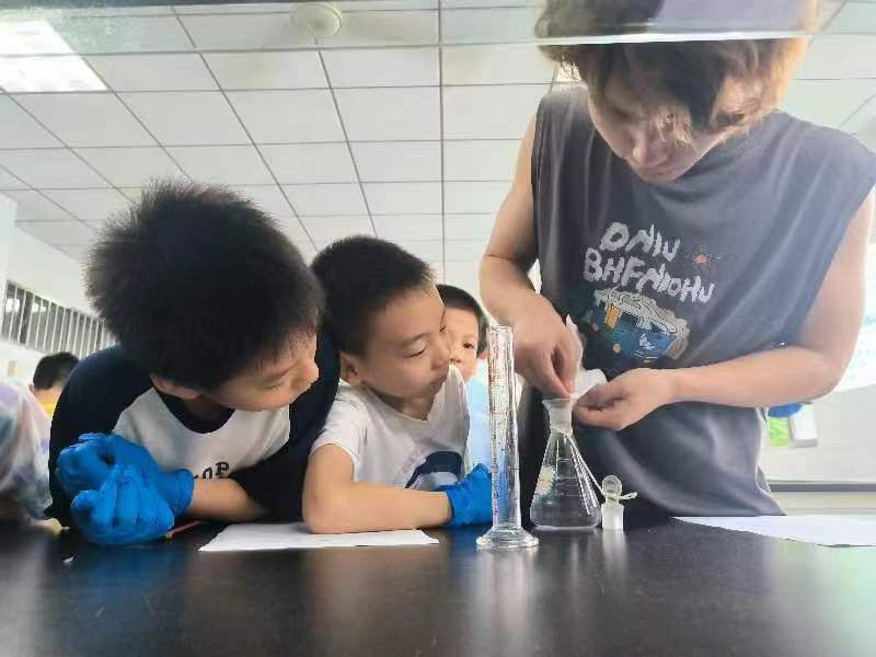 报告厅举行了短暂的开营仪式后,小朋友们在志愿者的带领下开始走进物理、化学实验室,依次开启了理、数、化研学之旅。
