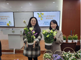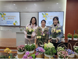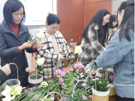 随后的实践环节中女教师们纷纷化身花艺师,用自己的巧手精心创作。在她们的手下,原本普通的材料逐渐变成了一个个精美的花艺作品。现场弥漫着花香,也洋溢着老师们的欢声笑语。