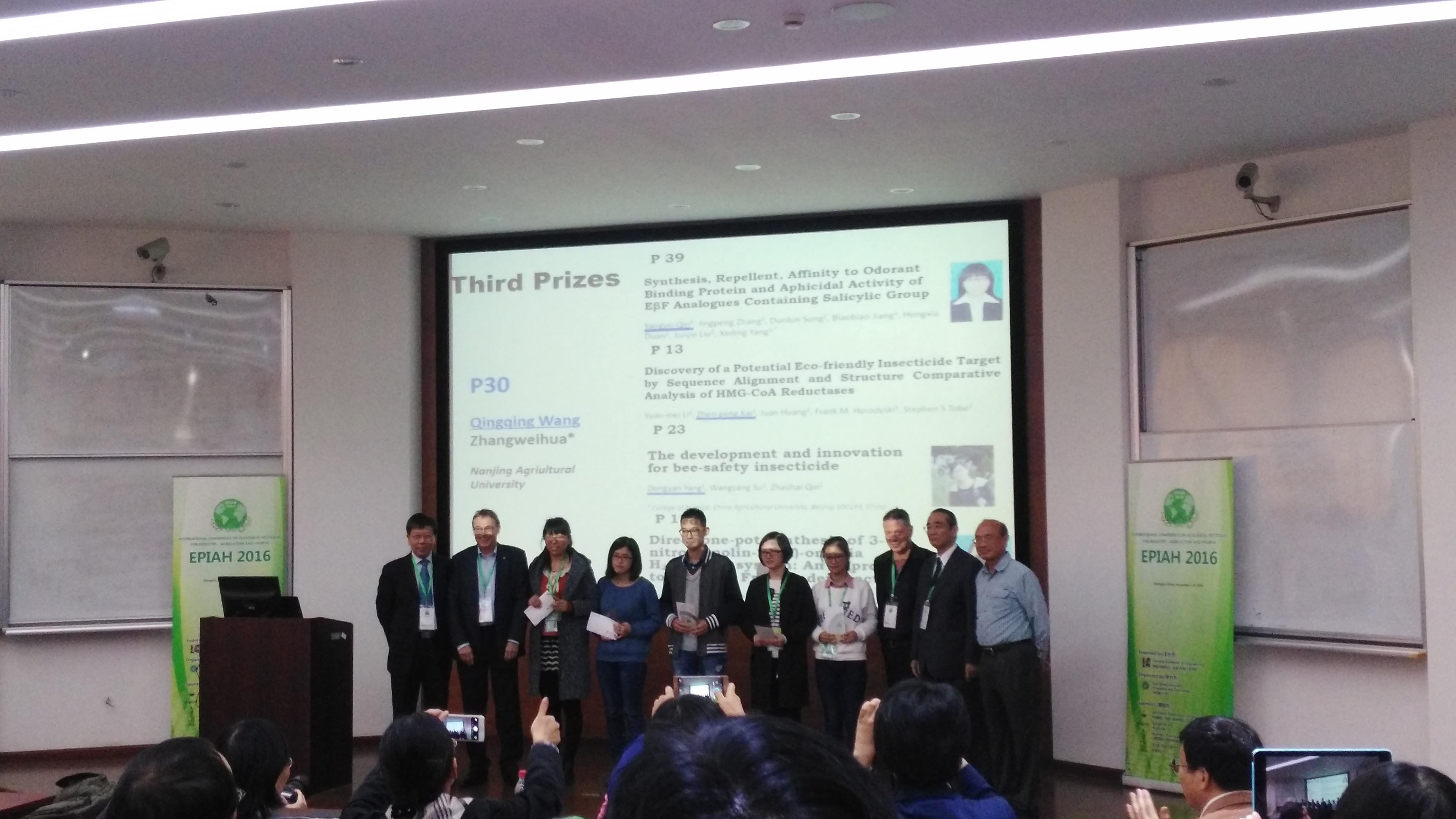 新农药创制团队章维华、丁煜宾、张明智等三位老师携部分研究生参加大会交流,2015级研究生王清清同学在大会墙报评选中荣获三等奖。