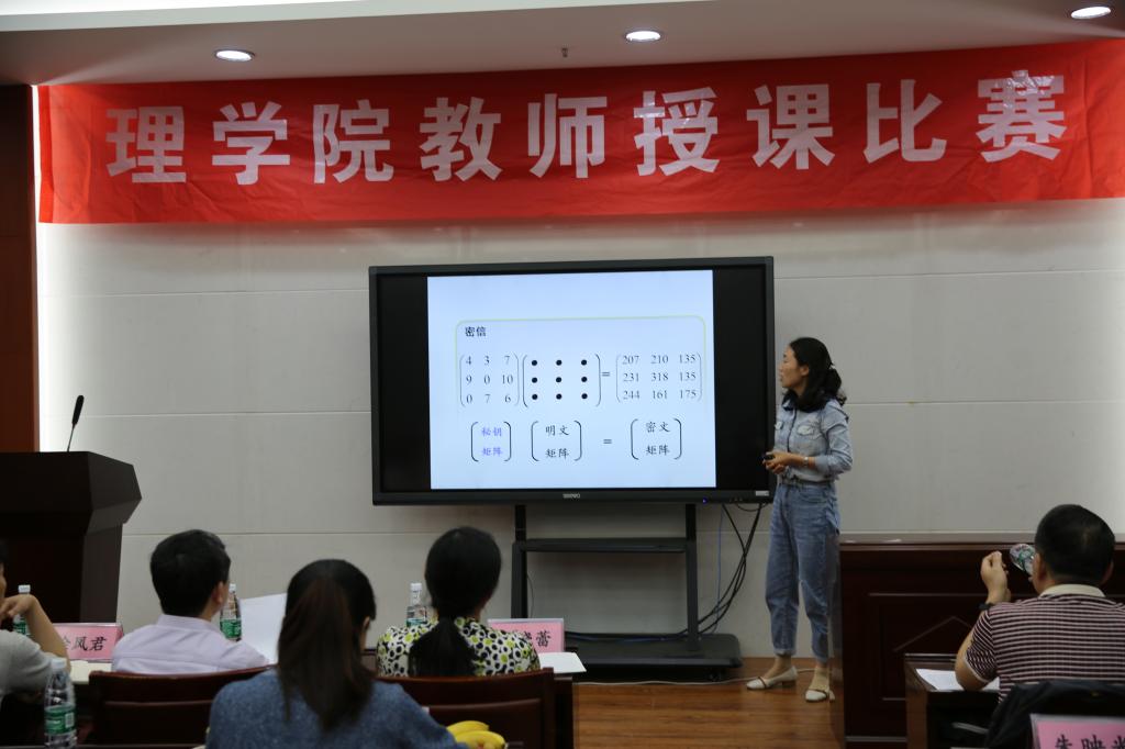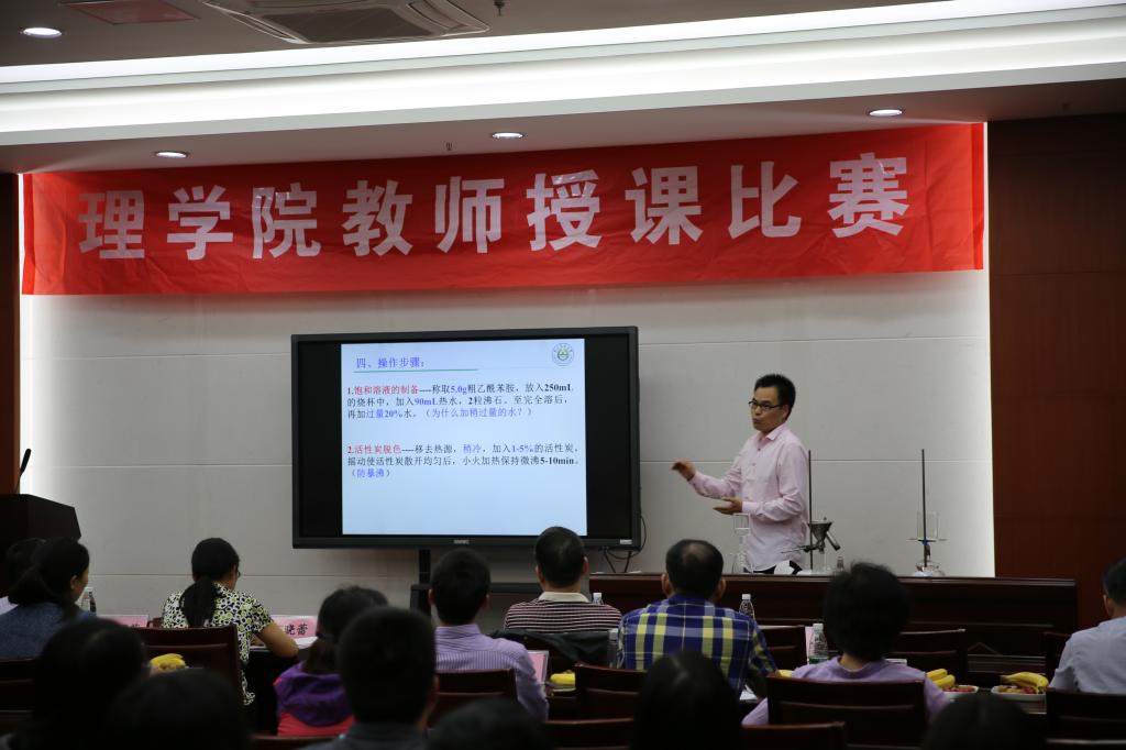 教师授课比赛在教四楼一楼报告厅如期举行。由数理化三个系遴选推荐的7位老师同台竞技,为全院师生上演了一场精彩纷呈的讲课“大比武”。本次比赛由学校教师发展与教学评价中心副主任丁晓蕾教授、学院领导、教学督导徐凤君老师、陈道文老师以及学院教学指导委员会成员担任评委,副院长朱映光教授主持。