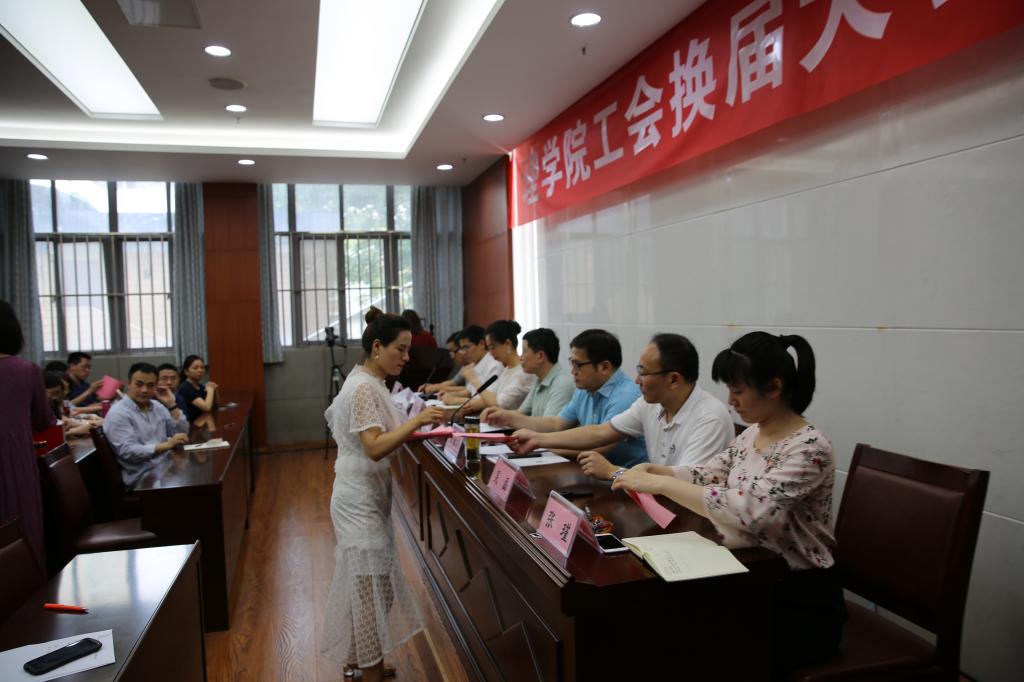 工会换届选举大会在报告厅举行。学院党政领导、全体工会会员参会。会议由工会主席耿金龙主持。