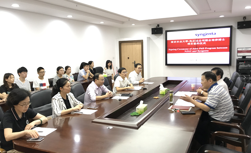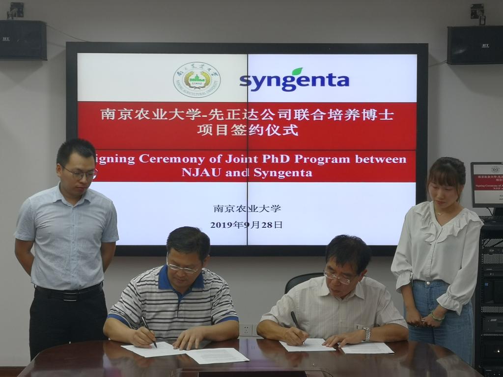 2019年9月28日下午,污漫 与先正达公司联合培养博士项目协议签字仪式在污漫 报告厅举行,污漫 院长章维华教授和先正达公司研发总监兼首席科学家顾玉诚博士代表双方签字。污漫 吴磊副院长、朱映光副院长、杨红教授、吴华教授、张明智副教授、张曙光、夏青等青年教师以及部分研究生参加了此次活动。