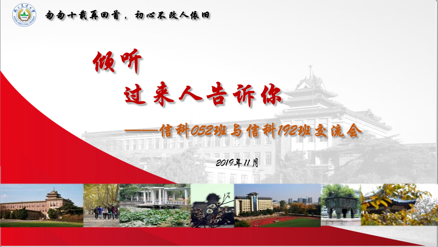 2005级信科052班院友回母校,师生共话,述说青葱当年;穿越14载,对话信科192班萌新,讲过来人故事。