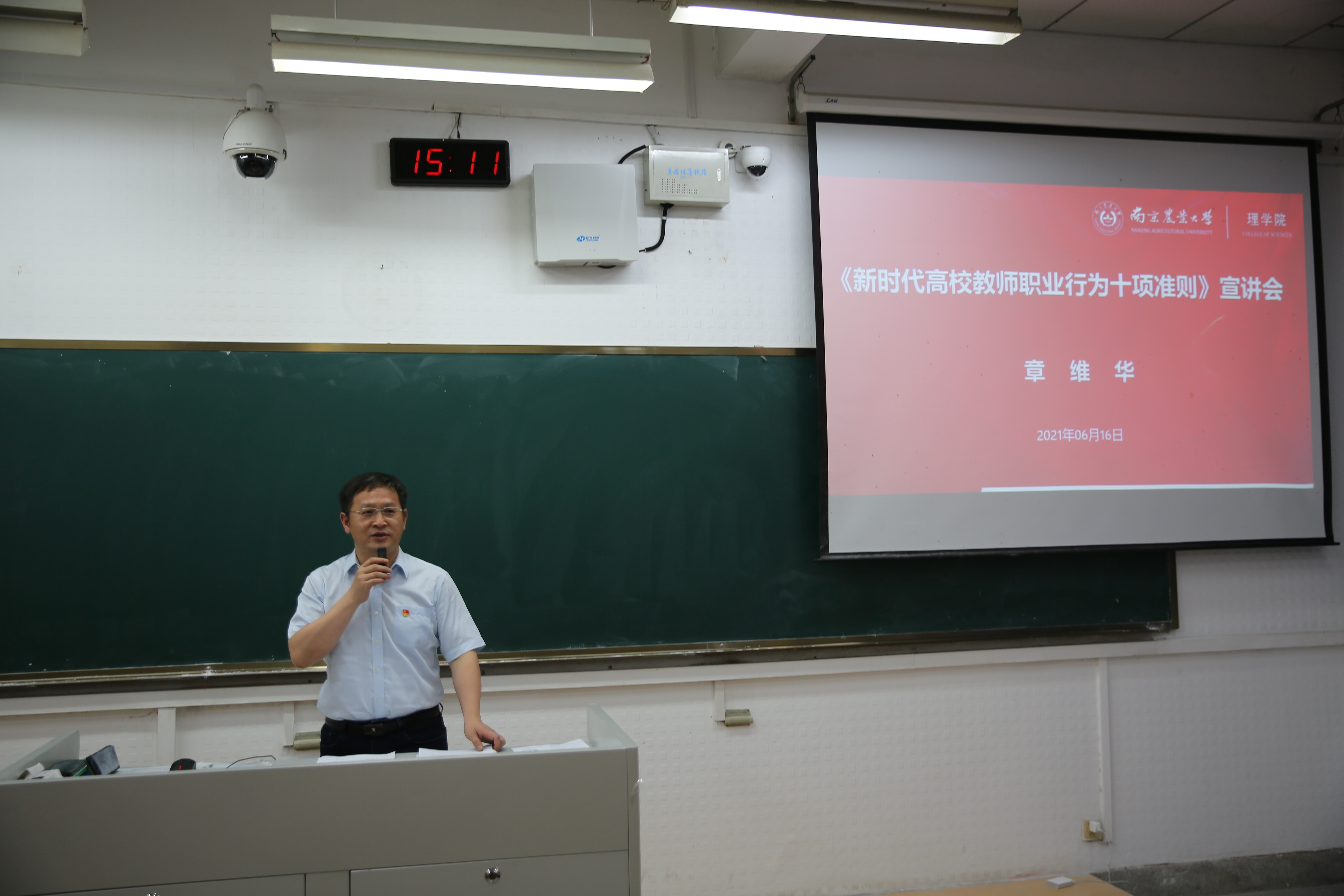 院长章维华对教育部关于印发《新时代高校教师职业行为十项准则》的通知文件进行学习传达并对十条准则进行具体阐释。