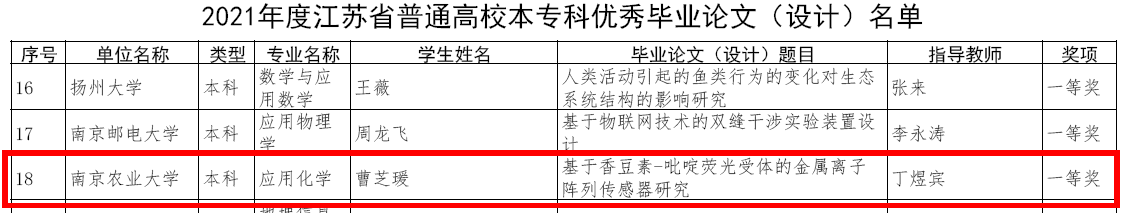 近日,江苏省教育厅公布了2021年度江苏省普通高校本科优秀毕业论文(设计)评选结果,污漫