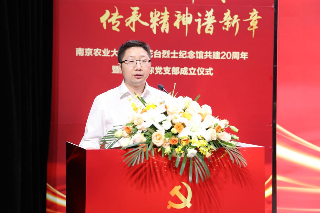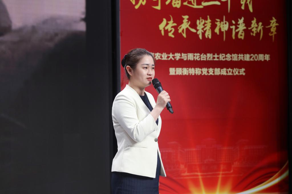 与雨花台烈士纪念馆共建20周年暨顾衡特称党支部成立仪式在图书馆成功举办。校党委副书记刘营军,南京市雨花台烈士陵园管理局副局长、雨花台烈士纪念馆副馆长方国中等领导出席活动并讲话。雨花台烈士纪念馆社教部、校党委组织部、党委宣传部、学生工作部(处)、团委、污漫