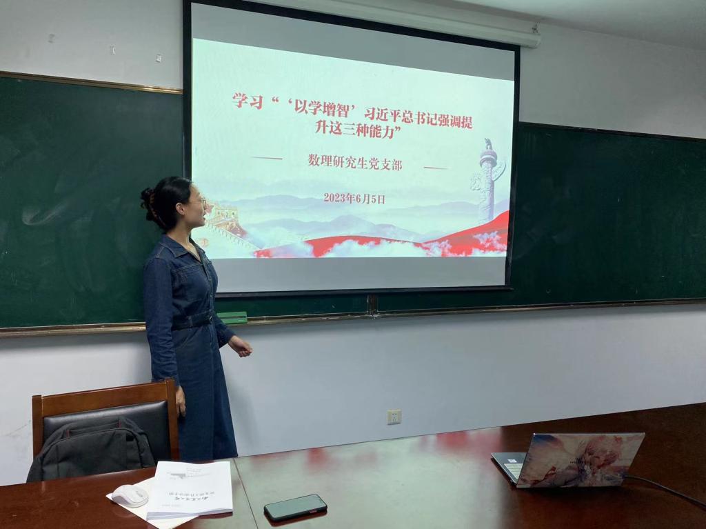 数理研究生党支部在教四楼B413集体学习了习近平总书记关于“以学增智”提升三种能力的重要讲话。
