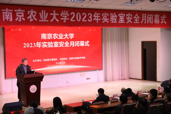 12月28日下午,学校2023年实验室安全月闭幕式在教四楼报告厅举行。校党委副书记、纪委书记吴荣顺出席会议,学校实验室安全工作领导小组部分成员单位负责人、学院实验室安全工作分管领导、学院实验室安全管理员、实验室与基地处相关工作人员、师生代表等150余人参加会议