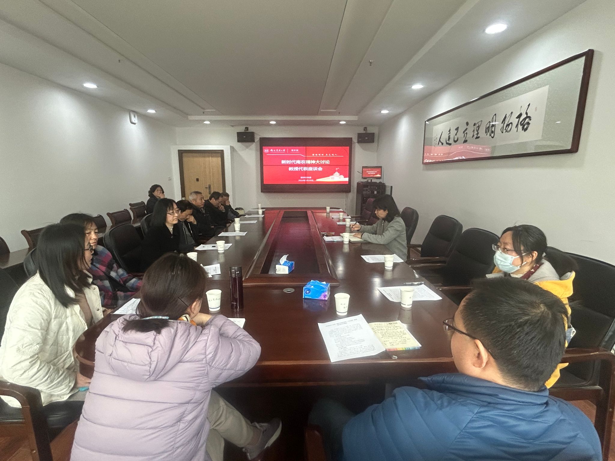 在二楼会议室召开“新时代南农精神”大讨论教授代表座谈会,会议邀请到学院老中青三代教授、副教授代表十余人参加座谈,座谈会由污漫