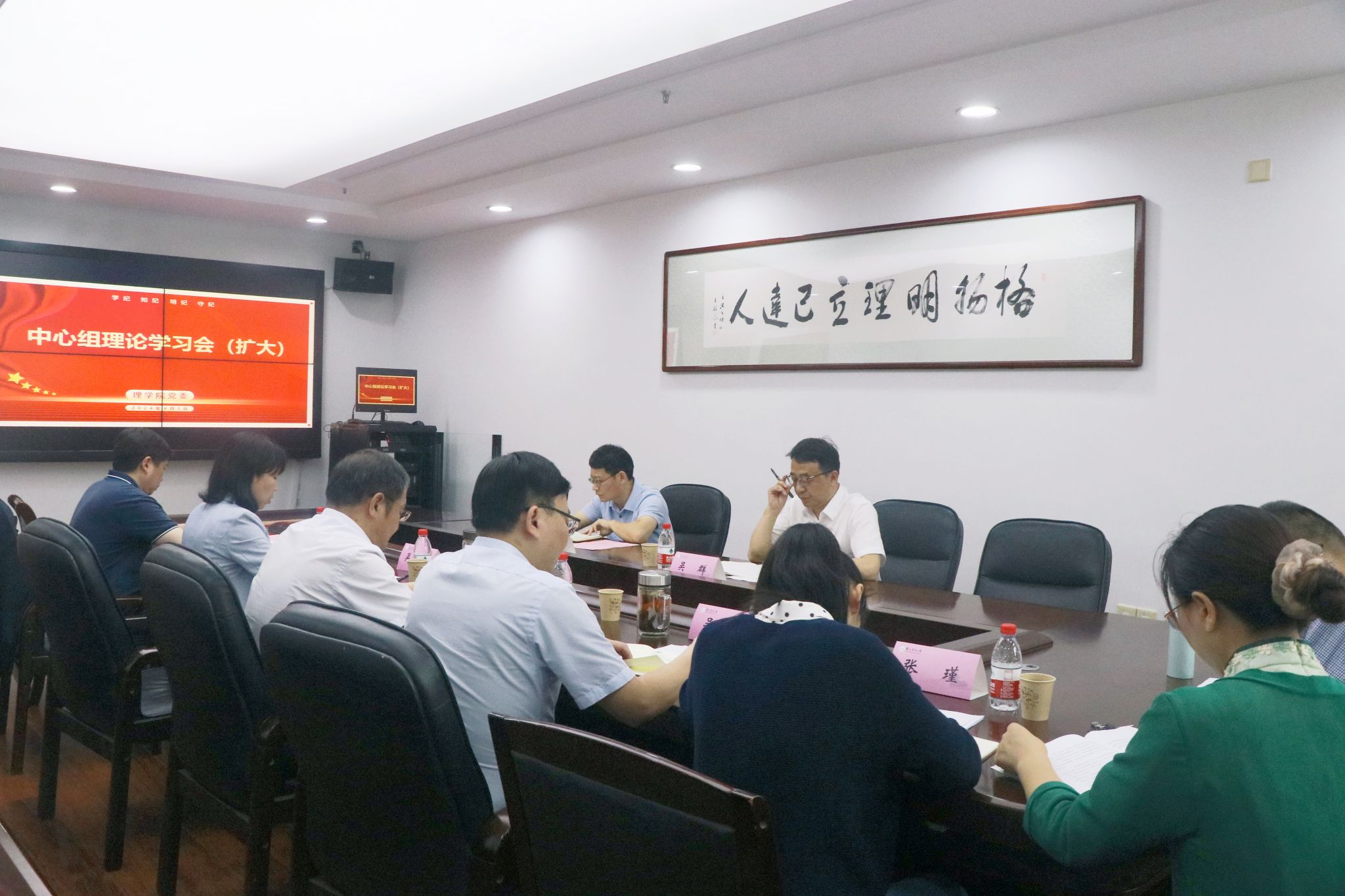理论学习中心组成员交流学习体会,并结合分管工作,就深入推进党纪学习教育、加强学院师德师风建设作交流发言。