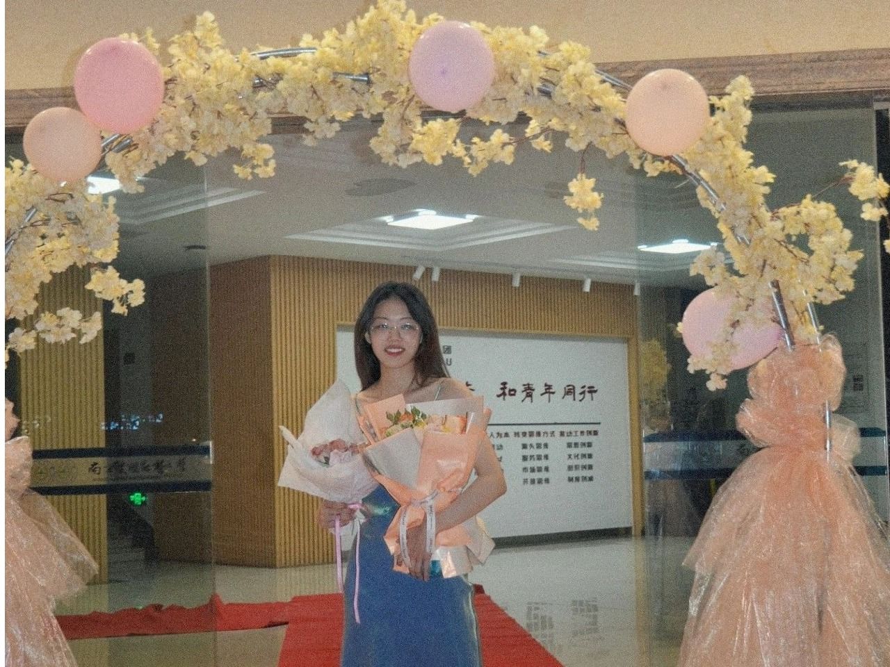 很多学弟学妹们面对舞台,也会因为恐惧而不敢上台。“在我看来更重要的是等我们毕业之后回头看,是不是会为自己当初的怯懦而感到遗憾。我看过很多很多场十佳歌手比赛,我会希望那个在台上闪闪发光人有一天会是自己。所以不要怕上台,舞台是你的,放轻松,你站上来的那一刻,你已经在发光了。我也特别感谢大一勇敢报名十佳歌手的自己,虽然当时的你穿的土里土气、一脸稚嫩,但谢谢你留下了人生美好的记忆。”