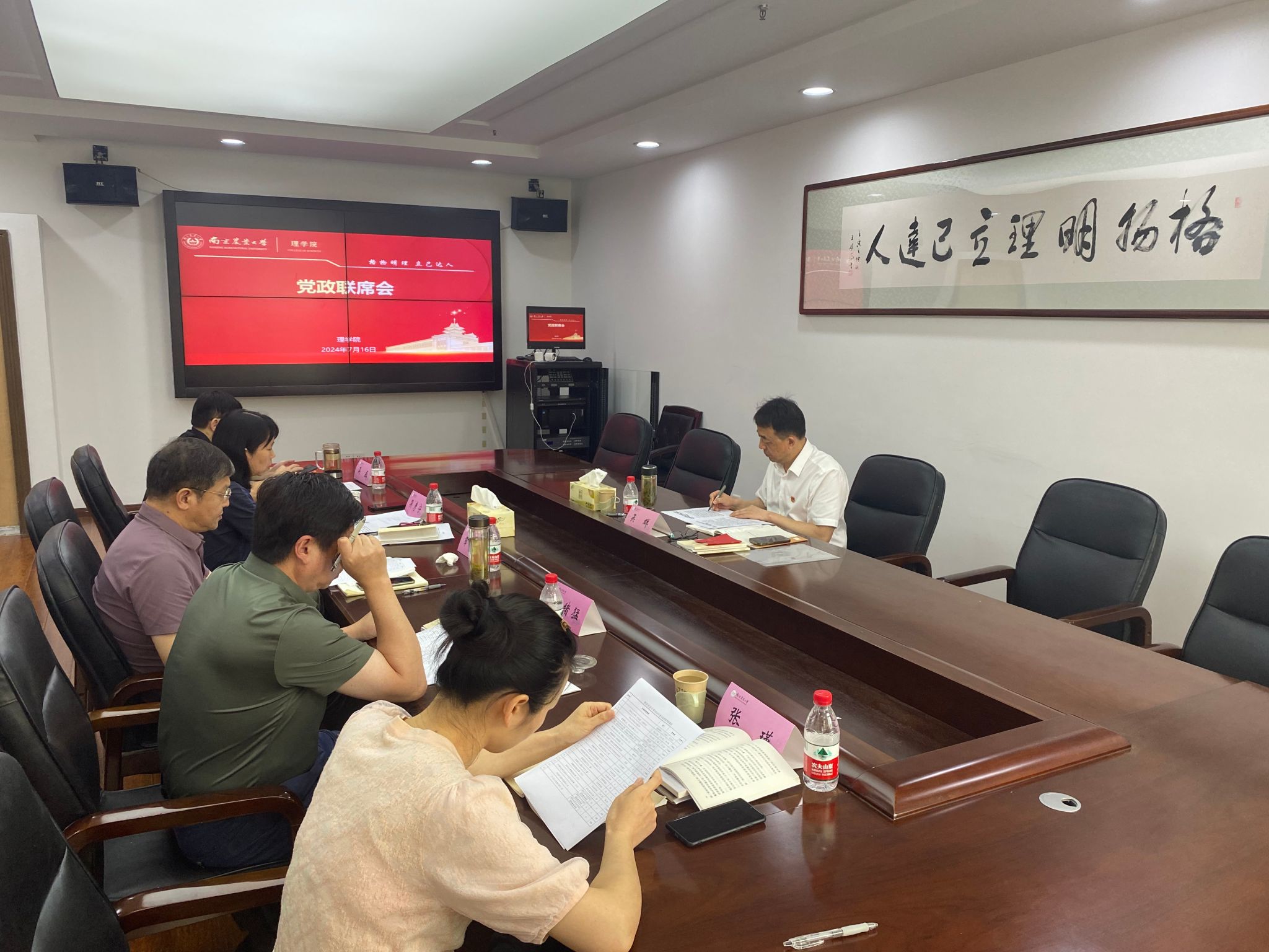 召开2024年第13次党政联席会,学院党政班子成员参加本次会议,校党委常委吴群列席并与班子座谈。会议由学院党委书记吴彦宁主持。