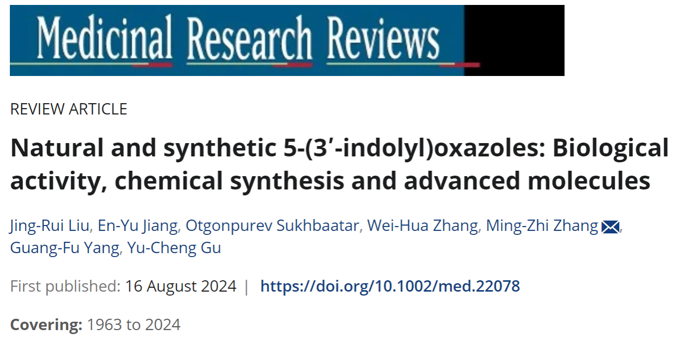 章维华教授和张明智副教授团队在药物化学领域国际权威期刊《Medicinal Research Reviews》在线发表了题为“Natural and synthetic 5-(3’-indolyl)oxazoles: Biological activity, chemical synthesis and advanced molecules”的综述论文,系统总结了1963年至今含有5-(3’-吲哚基)噁唑结构的天然产物及合成化合物的生物活性、化学合成、作用机理及活性分子,包括团队前期的系列研究工作。值的一提的是,这是污漫