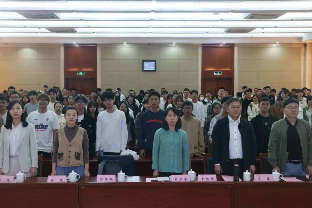 新生开学典礼暨入学教育在金陵研究院三楼会议室召开。院党委书记吴彦宁、院长章维华、院党委副书记冯绪猛、副院长吴磊、副院长张瑾、应化241班班主任张楠、信科241班班主任朱钟湖、信科242班班主任王娟娟、辅导员周玲玉、辅导员张世纪、全体研究生、本科生新生参与会议。