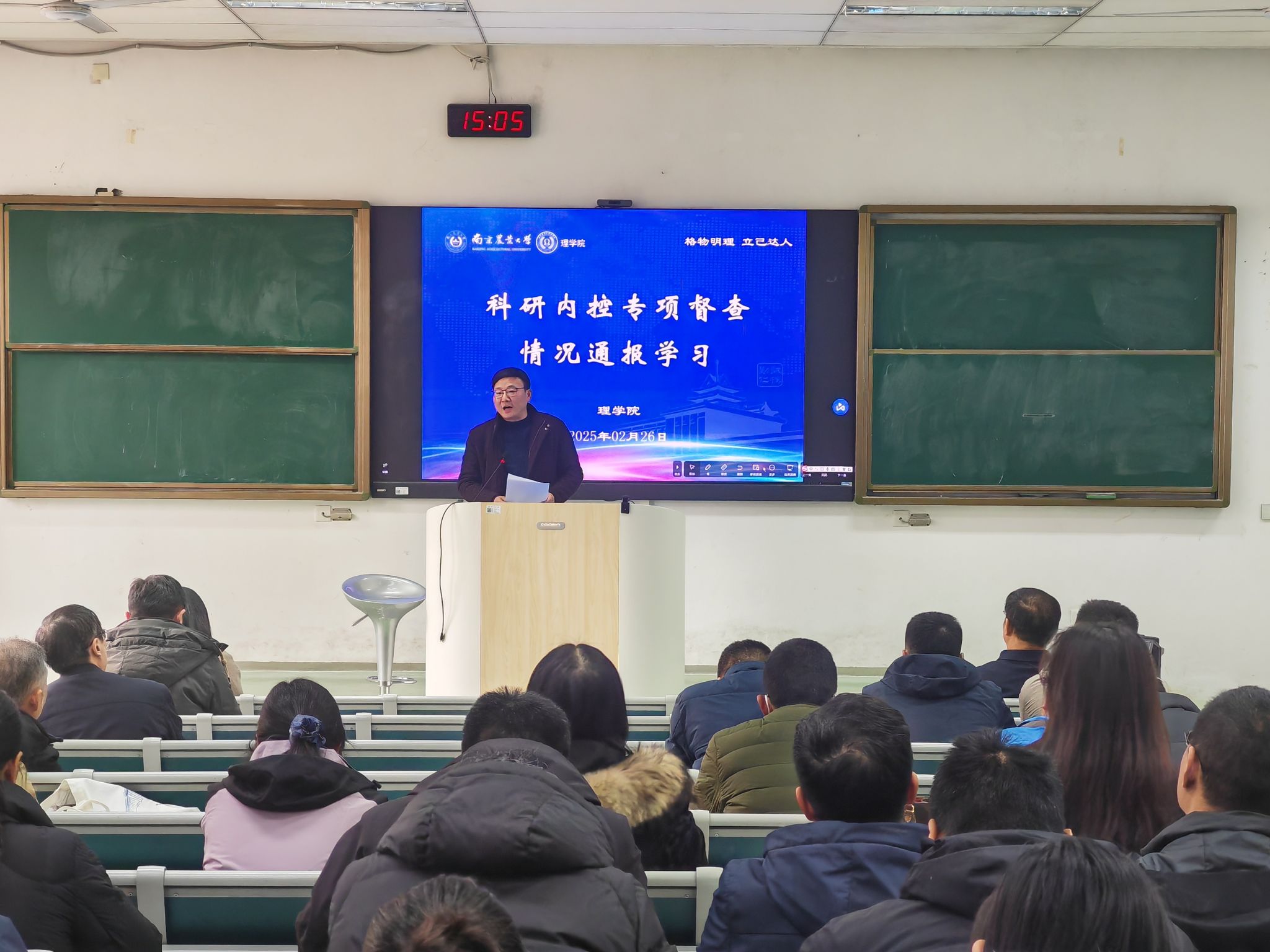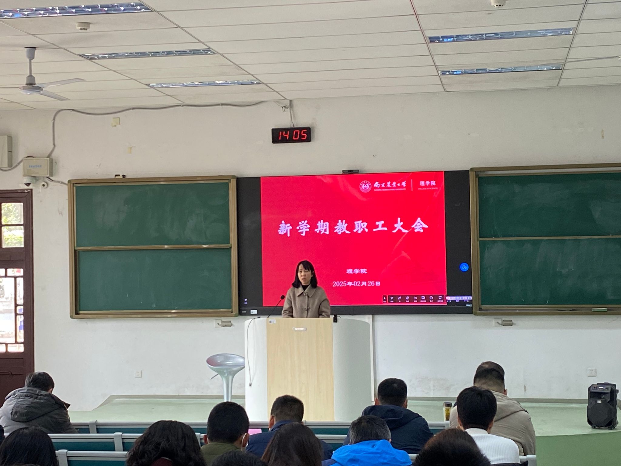 院长章维华以详实的数据和典型案例全面回顾了过去一年在教育教学、科学研究、国际合作等领域取得的突破性进展,并对2025年新学期工作进行全面动员与部署。他指出,2025年是“十四五”规划收官之年,也是谋划“十五五”发展的关键之年,更是学院空间拓展的重要一年。2025年,学院将围绕党建引领、人才培养、学科建设、科研创新、学生工作、国际合作等工作重点展开。同时对本年度学校下达的目标管理考核任务进行逐一解读,强调达成目标的重要性,提出了目标实现的路径举措。他强调,全院教师应发挥基础研究的优势,主动求变,融入到学校学院有组织的科研大环境中,深化学科交叉融合和成果运用。要进一步解放思想,牢记使命,锐意创新,立足本职,争先争优,共同为实现学院事业高质量发展而努力奋斗。