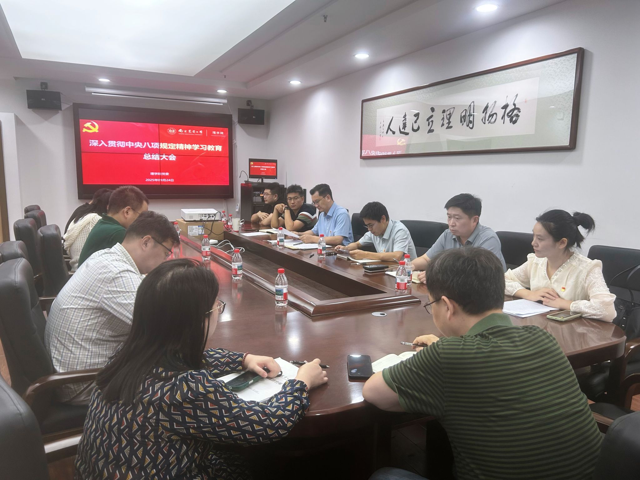 李日葵代表学院党委作深入贯彻中央八项规定精神学习教育总结。他指出,自学习教育开展以来,学院党委以习近平新时代中国特色社会主义思想为指导,通过“深化学习研讨、精准查摆问题、聚焦集中整治、坚持开门教育、强化重点群体教育、压实组织领导”六大举措,推动学习教育走深走实。下一步,学院党委将在“深化学习形式创新、健全长效教育机制、聚焦难点合力攻坚”三个方面下功夫,持续巩固学习教育成果,探索学习教育常态化长效化开展机制,推动学习教育成果转化为学院事业发展的强大动力,为构建学科建设与人才培养高质量发展新格局奠定坚实基础。