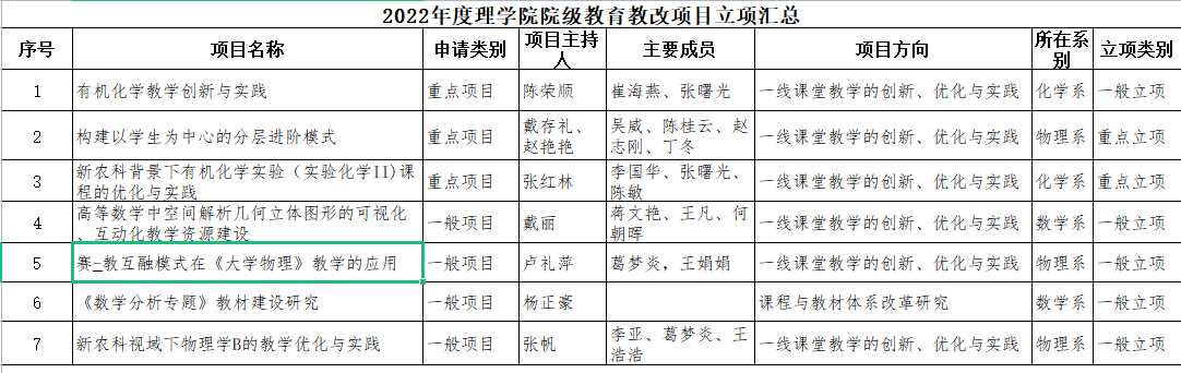 2022年度院级教育教改项目立项公布