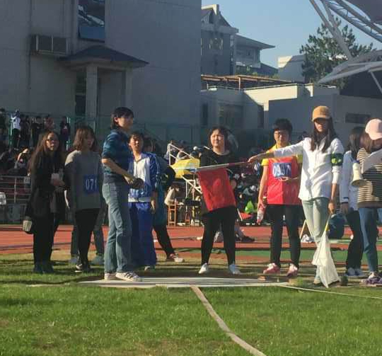 应化152班的司文婧,展现了其飒爽英姿。标准的投球动作,一气呵成,远距离的好成绩掷地有声。巾帼不让须眉,各学院的女子都实力超群。最后司文婧以微弱的劣势惜败,但超越了自我亦是成功。位于赛场就是一种辉煌!
