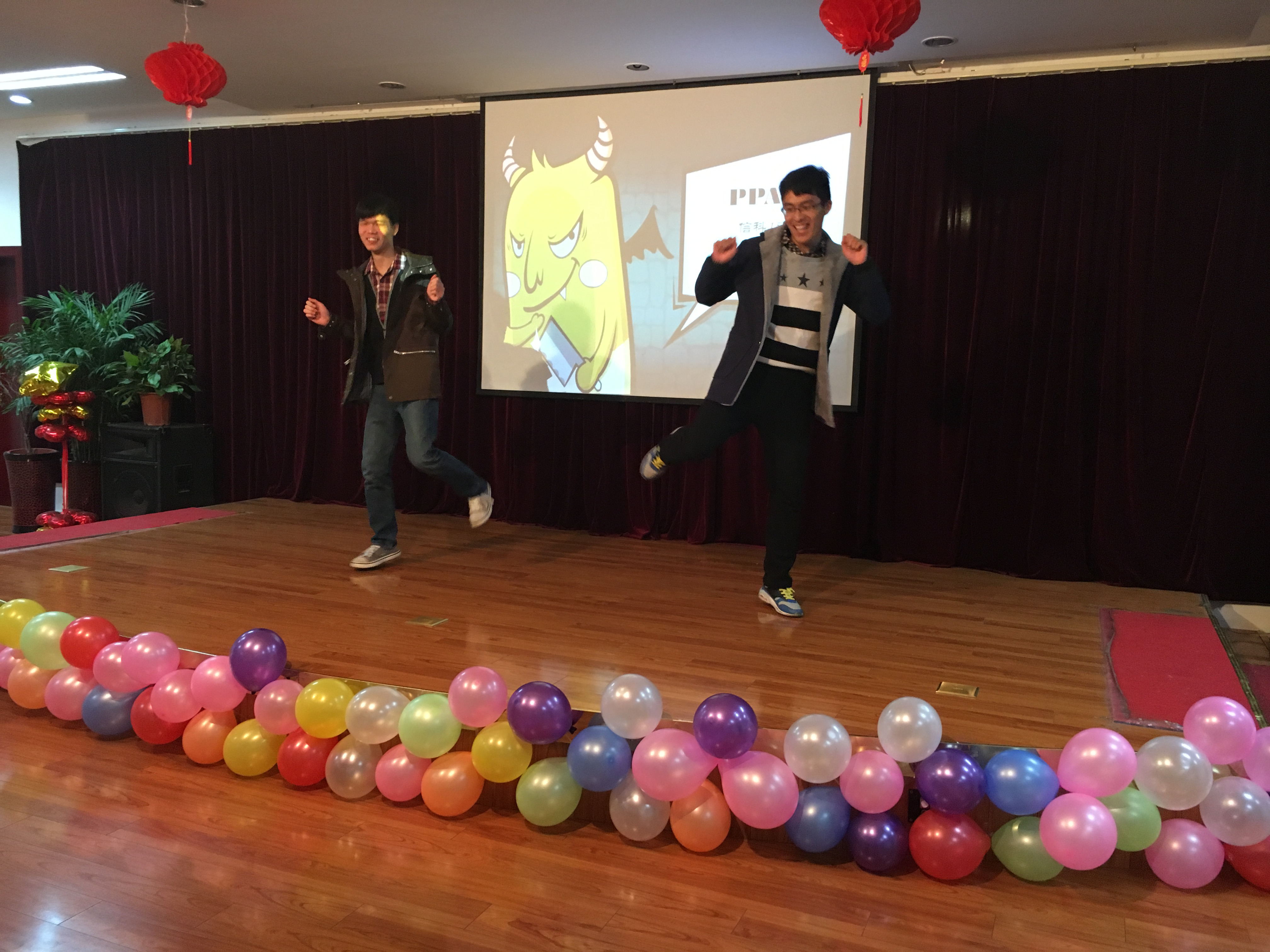 一曲唱罢随后信科161班的姑娘们带来了小合唱《信科的故事》,展现了数学系学子们幽默风趣的一面,现场气氛也变得更加轻松活跃。紧接着信科151班的周紫阳和涂建新同学献上舞蹈《PPAP》,出色的演绎将晚会气氛推向高潮。