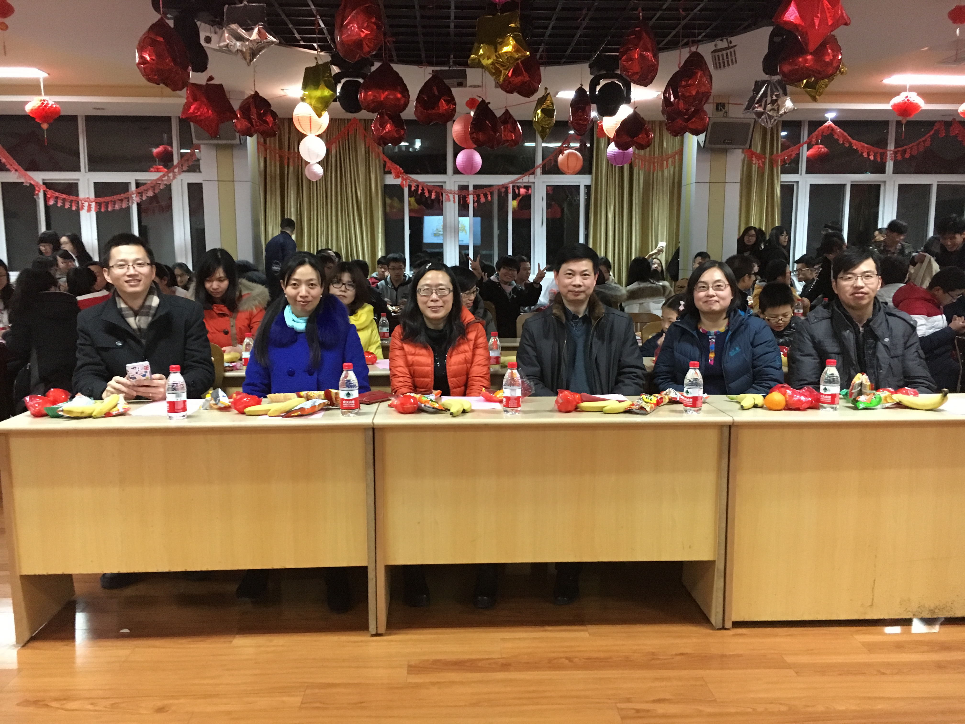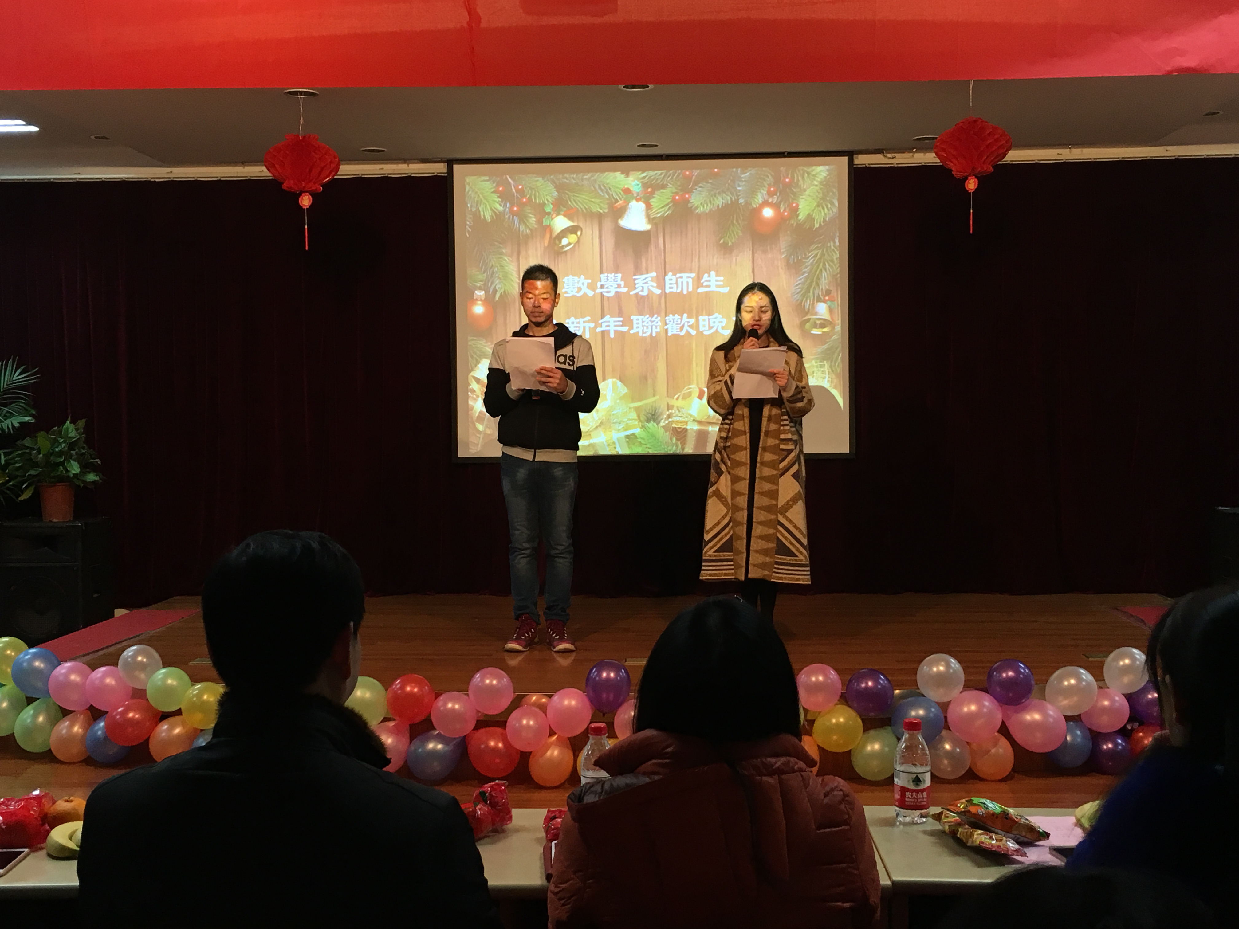 数学系师生迎新年联欢晚会在老年人活动中心正式拉开帷幕。全体数学系师生欢聚一堂。