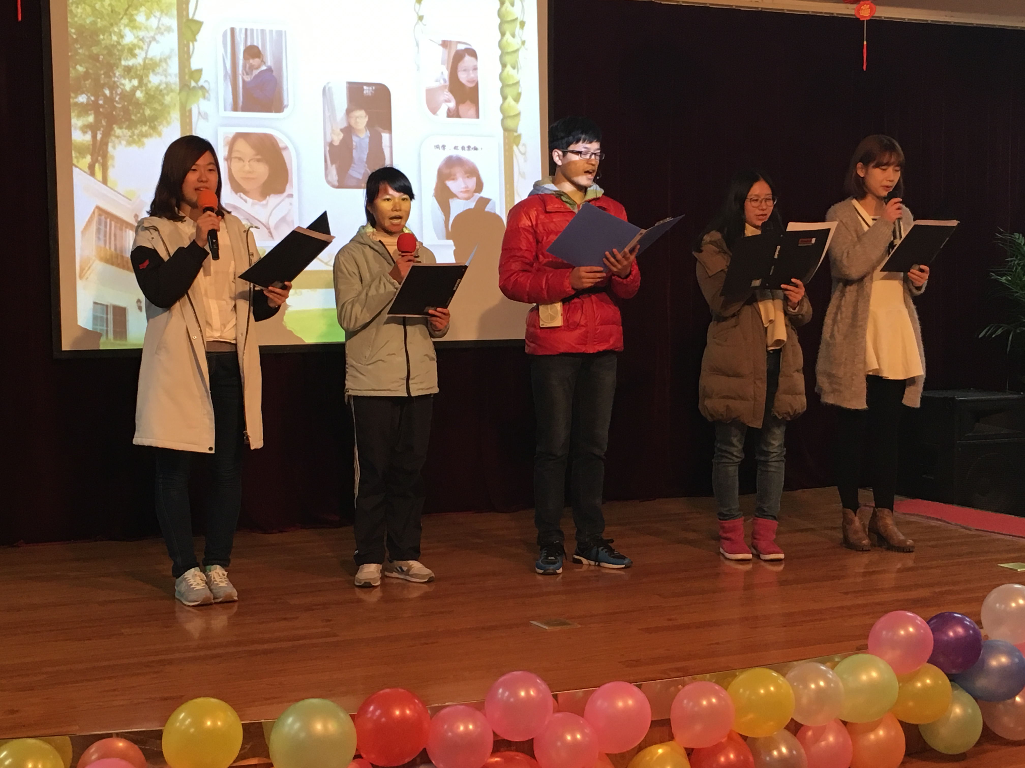 在短暂的开场视频之后,来自信科161班的雍乾和信科151班的陈悦同学作为此次晚会的主持人致开场辞,表达了对各位老师一直以来教书育人的谢意以及对全体数学系学生的美好祝愿。
