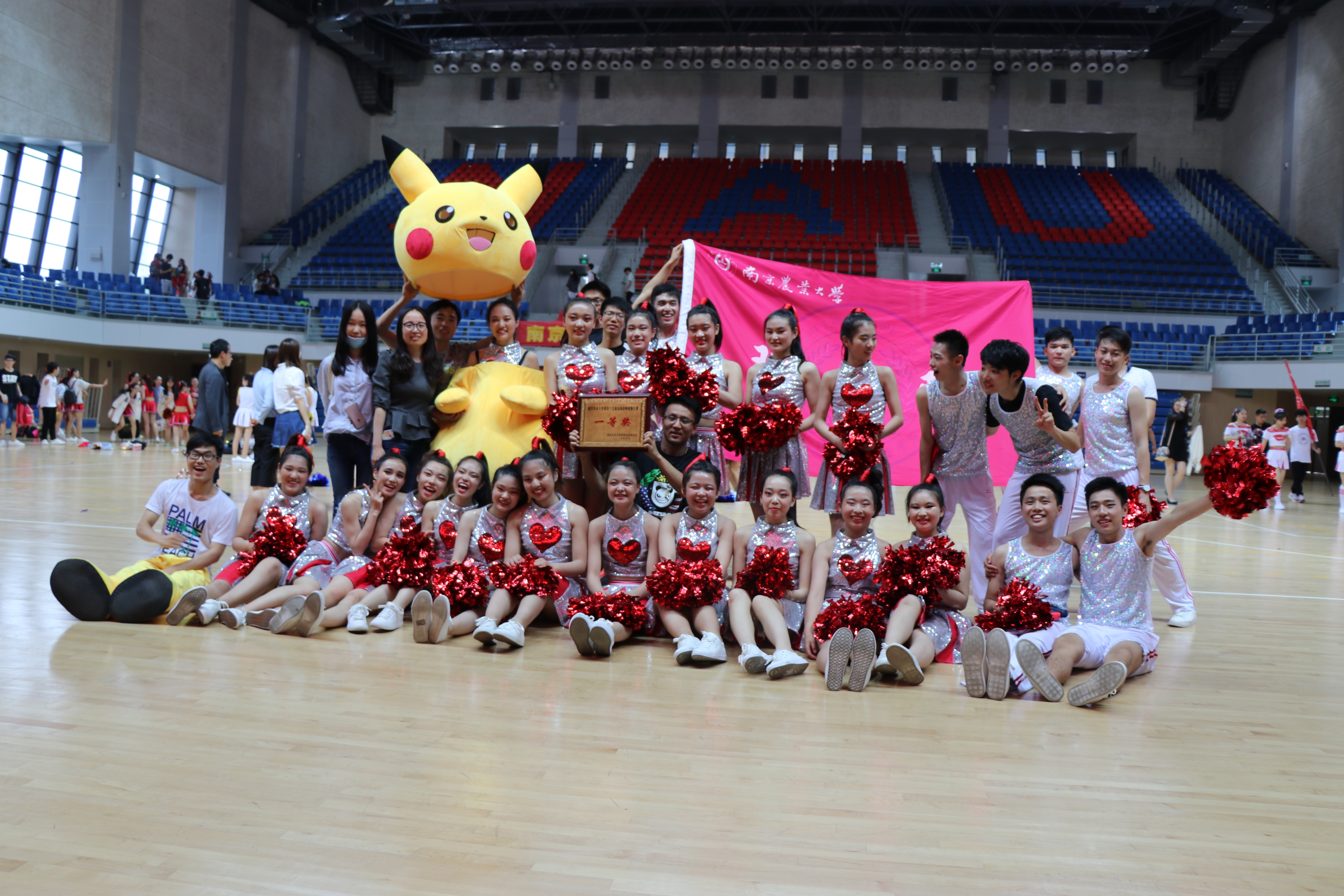 本次比赛分为两大部分,第一部分是来自各学院代表队的团体赛,第二部分则是个人“啦啦之星”的争夺。韩李美萱老师致辞后比赛正式开始。资环院在清新绚丽的音乐中率先登场,活力四射的舞姿,绚丽的造型和整体编排赢得了满堂喝彩,为比赛开了个好头。接着出场的另外十四个院也热情不减,绚烂的舞姿赢得了阵阵掌声,青春的活力也在赛场蔓延。污漫
