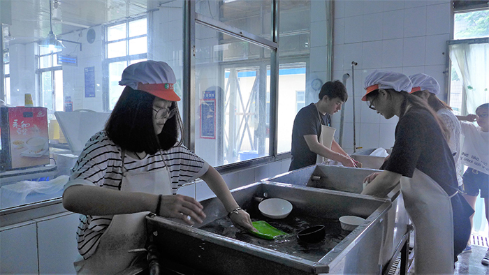 自2017年7月6日起,在应化151班董亚雯的带领下,一支12人的暑期社会实践团队以食堂体验观察员的身份,走进了学生第三食堂的后厨。通过三天的亲身体验,让学生真实地感受到每天用餐环境以及工作人员的不易。