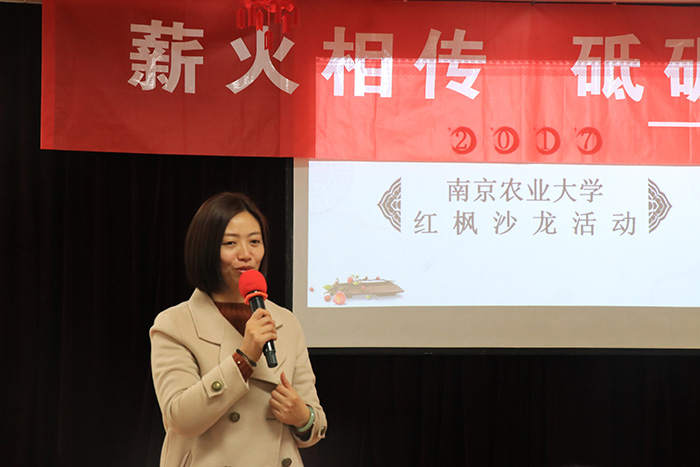 其次由红枫沙龙龙长发言,她向我们讲述了老教师们的故事、红枫沙龙活动的由来,及红枫沙龙举办的历史和意义,让我们感受到老一辈教育工作者的艰辛与不易。
