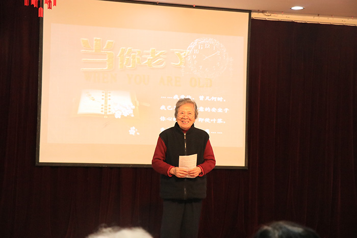 党委副书记刘照云发言,刘书记表达了对老一辈工作者的敬意,并祝福她们健健康康,在接下来的日子里笑口常开。随后宣布演出正式开始。