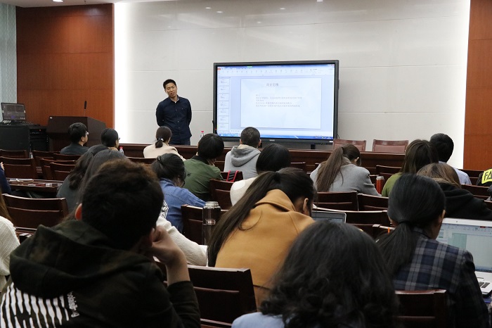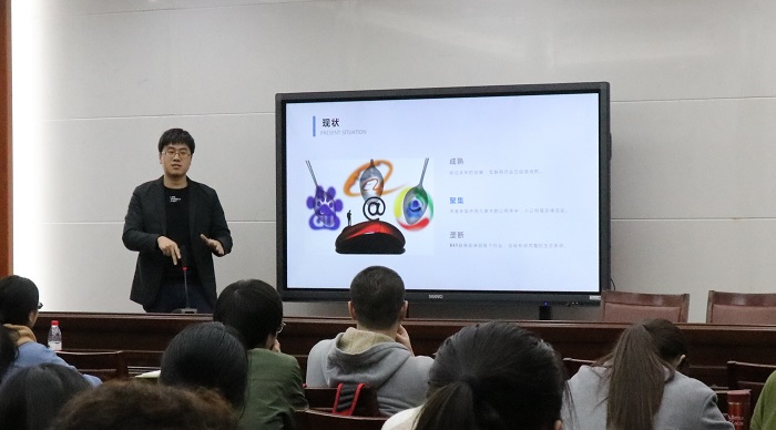 首先,来自阿里巴巴的孙磊从“我的农大”、“我的工作”、“人才定义”、“关于同学”四个方面汇报了自己的成长。开篇,孙磊自嘲学习差到没有学历证,引发了大家的数不清的疑问。从大一的迷茫到大二挂科的绝望,大三看到希望到大四获得自信,孙学长从清晰地职业生涯规划中获得了自己的职业发展之路,并一直坚持到现在。认真听完学长的分享后,同学们敬佩之情油然而生。“职业目标明确”是对孙磊四年大学生活最准确的评价,“学好功课很重要”也是他对学弟学妹的谆谆教诲。