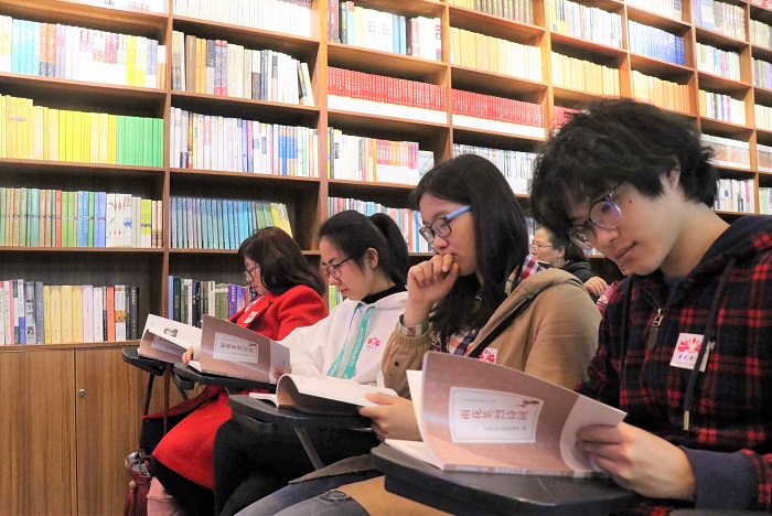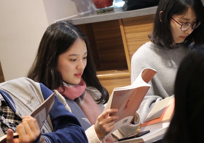 现场同学认真品读诗词