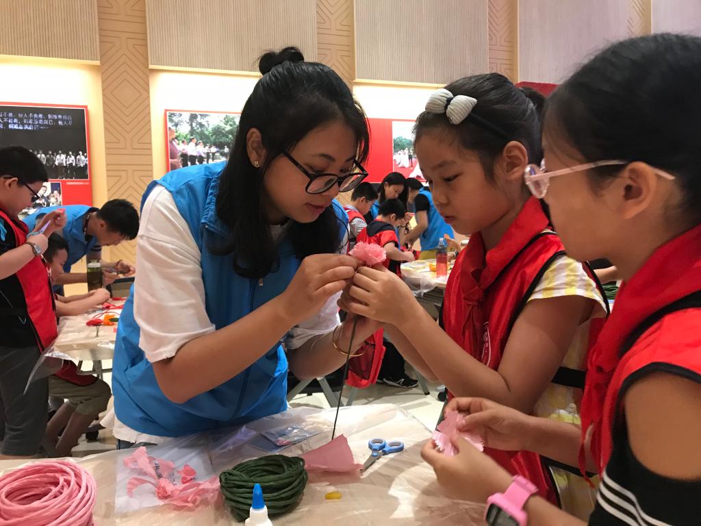 第11、12届雨花台义务讲解队队员, 他们将自己的讲解经验与技巧传授给小营员们,于8月16日至19日,协助馆内讲解员进行培训工作,耐心的指导,细致的讲授,为进一步传承雨花精神献力。