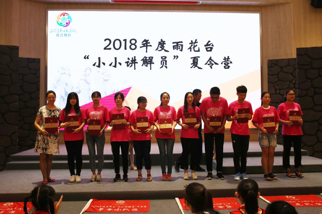 荣获“优秀组织奖”,十二名团队志愿者代表荣获“优秀志愿者”称号。为期一周的“小小讲解员”夏令营之旅,旨在以青少年的视角讲述历史、弘扬雨花英烈精神,让孩子们进一步了解红色文化的同时,积极传承与弘扬,在未来的成长道路上逐步落实党的十九大精神,成为一名优秀的共产主义接班人。