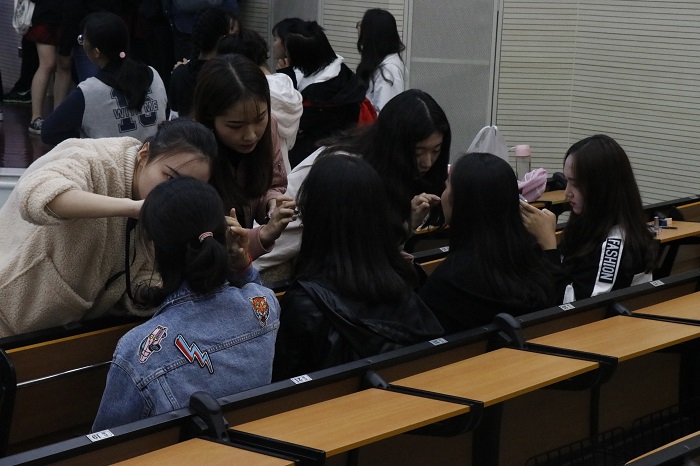 工作人员前期妆发准备