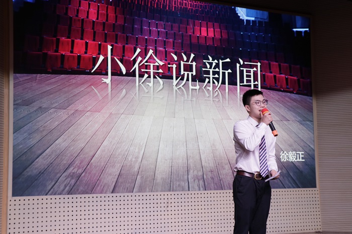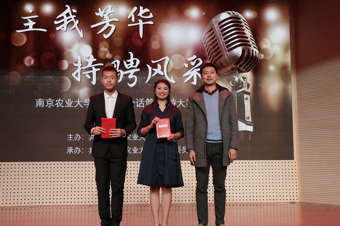 本次比赛共分为三个部分,第一部分自命题主持中,每位选手自行选择题材后做出3分钟的主持。在本轮比赛中,来自人文院的2号选手李鑫主持的小鑫说事以开朗、风趣的主持风格吸引了大家,简单介绍了腾讯公益上“一元钱购画”活动,而金融院的4号选手俞依初从身边取材,主持的美食美刻介绍了南农一食堂的各种小吃。而且令人钦佩的是,俞依初同学是脱稿主持,虽然有所停顿,但勇于挑战的精神十分值得我们学习。5号选手是来自污漫
