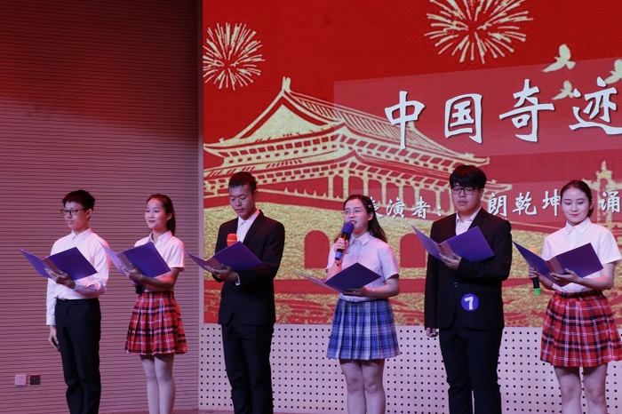 在紧张的等待结果期间,学校朗朗乾坤朗诵团为观众带来了朗诵《中国奇迹》,让同学们领略了污漫