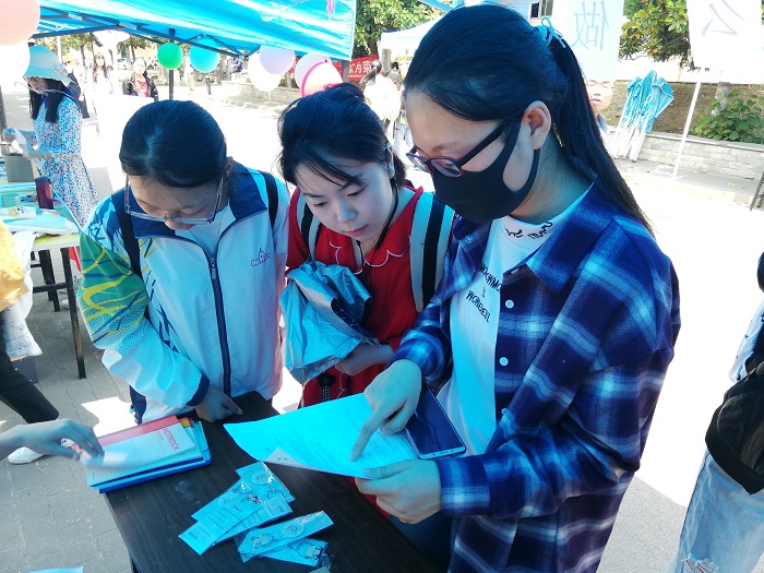 本次活动采用问答形式,让更多学生了解学习急救和自救的知识。参与者在工作人员的指导下,分别回答三道选择题和三道判断题,题目的内容均为急救和自救的相关知识。简单又有意义的活动吸引了不少路过的同学,他们积极地回答问题,认真的学习急救的知识,在轻松愉悦的氛围中收获知识。