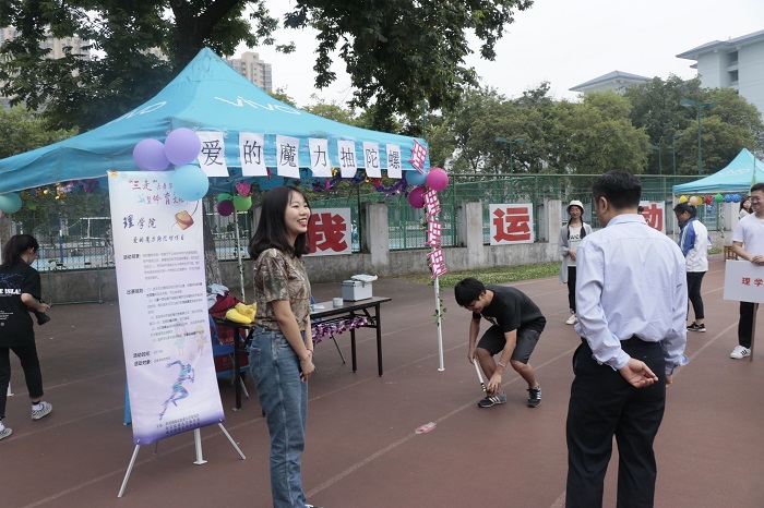 最先开始的一项比赛是鼓动人心,这是一项考验全体队员默契和配合的运动,污漫 运动员在本项比赛中齐心协力,团结一致,获得了第一名的好成绩,充分展现了学生之间的团结默契。在接下来的足球颠球比赛中,同学们稳住步伐,再一次取得了第一的成绩。