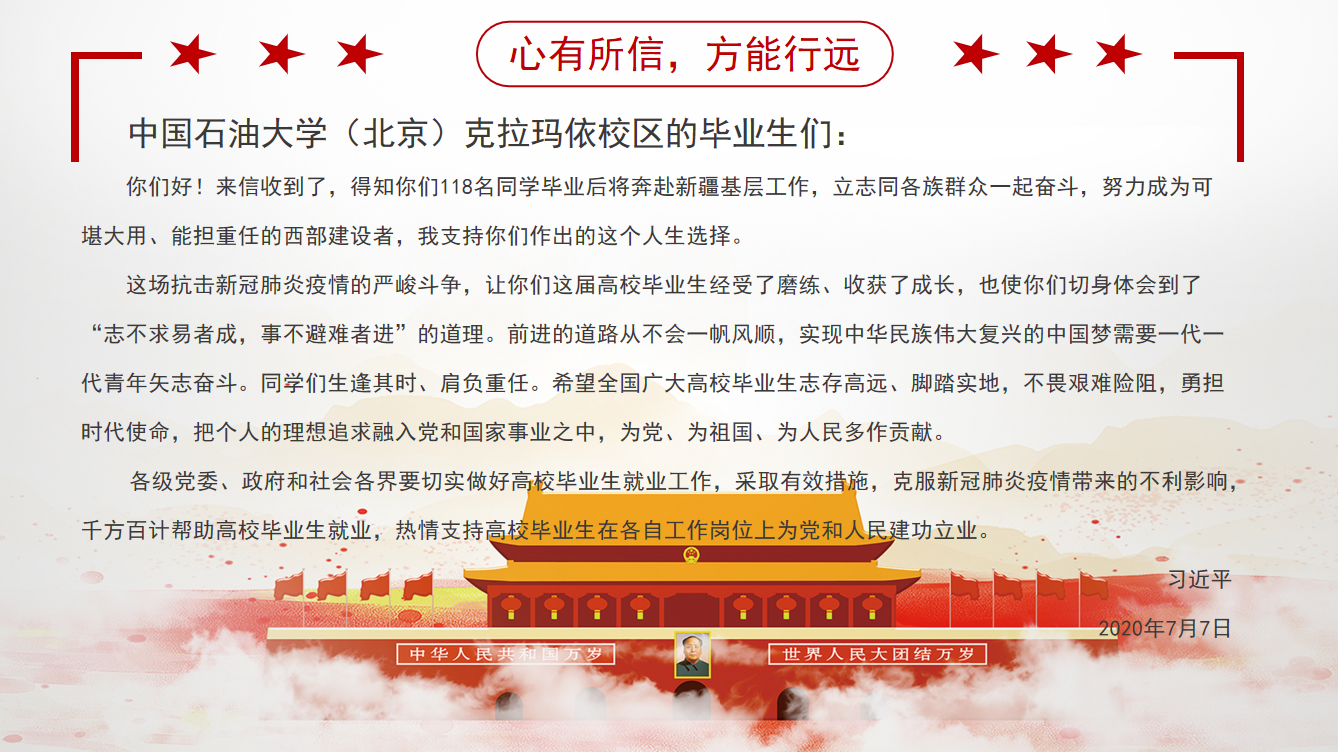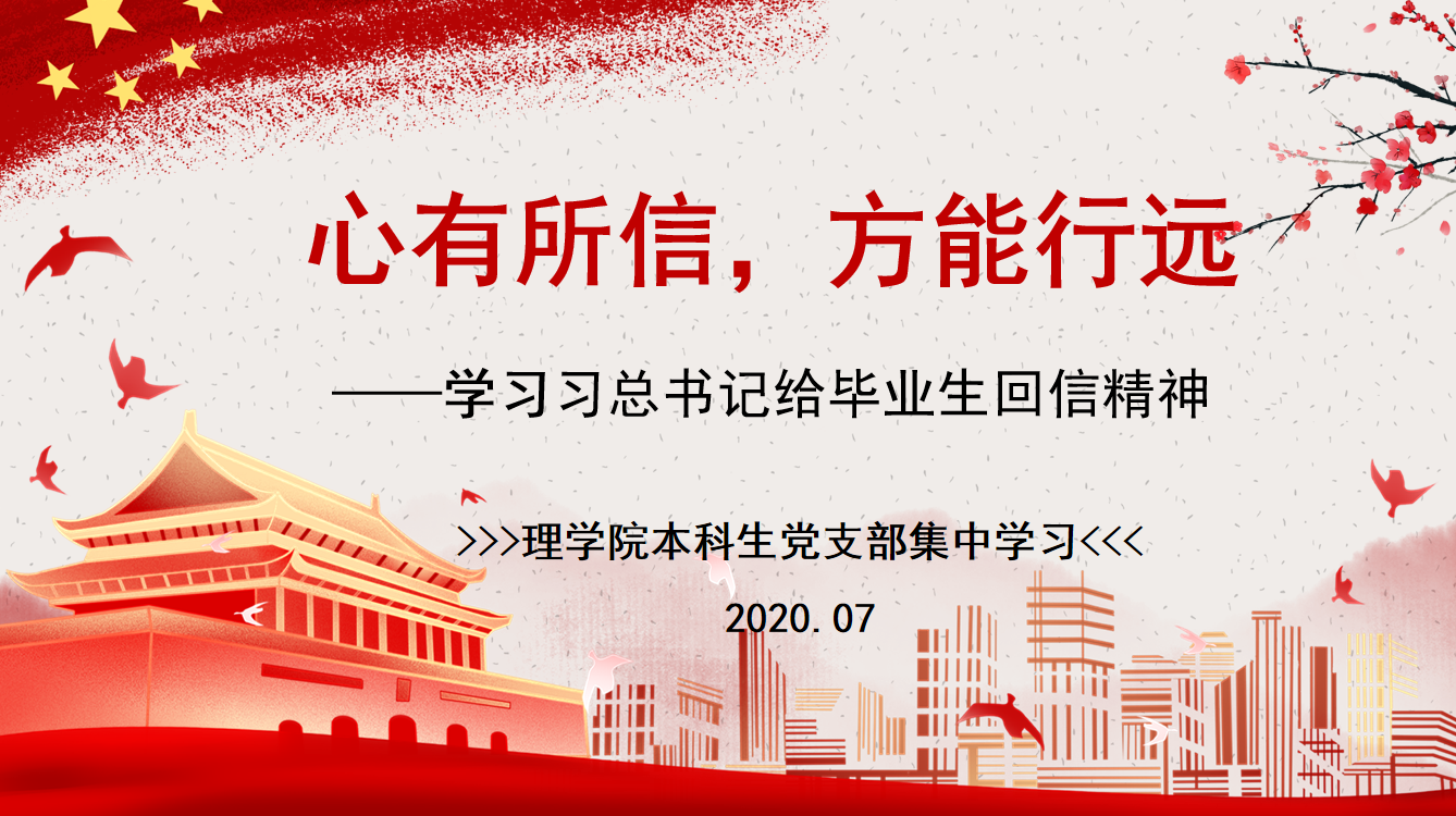 应用化学本科生党支部和信息与计算科学本科生党支部集中学习了习近平总书记给复旦大学青年师生党员和中国石油大学克拉玛依校区毕业生的回信精神。心中有信念,人生有方向,脚下有力量,党员同志们结合自身的学习和生涯规划进行了深入的学习和思考。