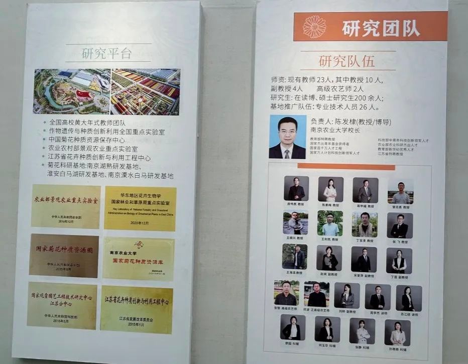 在精心布置的展台上,多种菊花竞相开放,五颜六色,形态各异,如同一幅生动的画卷。菊花不仅有很强的观赏价值,在中国还是紧随茶叶的第二大园艺品。南农菊花研发团队也不断推陈出新,研发出菊花护手霜、菊花沐浴露、菊花口红、菊花面膜等备受消费者青睐的衍生产品。