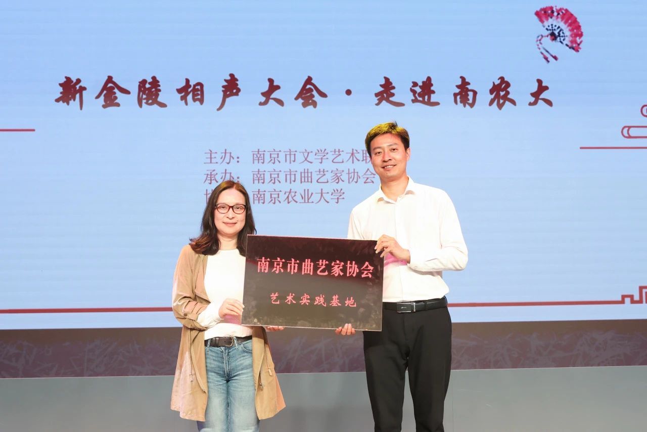 颁发了“南京市曲艺家协会艺术实践基地”铭牌。基地的设立,旨在通过相声等曲艺艺术,加强校地融合交流,丰富校园文化,让更多的青年了解、喜爱并传承中华优秀传统文化。