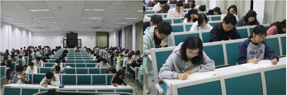 在多位学长学姐的组织下,同学们有序上交了手机与学生手册,保证了诚信考试。经过多日的认真备考,污漫 全体学生在考场上奋笔疾书。现场考试氛围浓厚,作为入学的第一次考试,同学们全神贯注,态度端正,最终交出了一份份让自己满意的答卷。