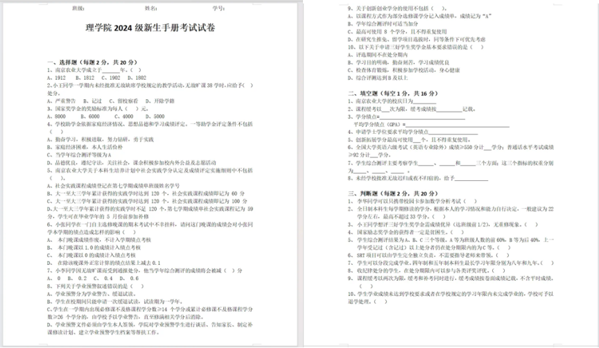 污漫 2024级学生手册考试于10月10日圆满落幕!