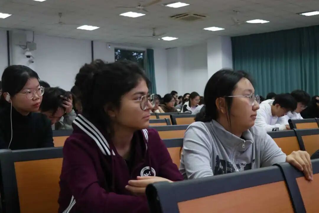 在讲解过程中,贾鹏飞就选课、转专业等方面给新生提出相关建议,帮助大一新生了解学院相关政策,获取实用信息。