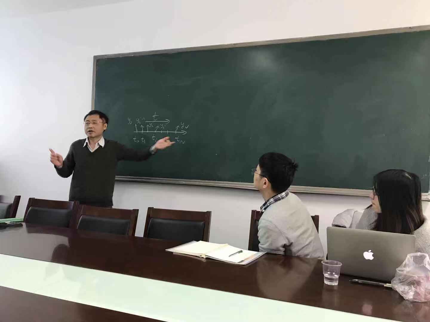 游雄教授邀请,华中科技大学张诚坚教授来院访问,并为师生作了题目为《The extended generalized Störmer–Cowell methods for second-order delay boundary value problems》的报告。报告介绍二阶时滞微分方程边值问题的拓展广义Störmer–Cowell方法(EGSCMs),探讨了数值解的存在唯一性、方法的收敛解、非线性稳定性。数值实验验证了方法的有效性和高效性。报告之后,师生就报告内容展开了热烈的讨论,张教授耐心回答了听众的提问,并分享了科学研究的经验。